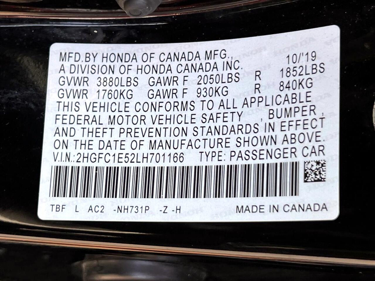 Vehicle Inquiry for 2020 Honda Civic Si Sedan Manual w/Summer Tires